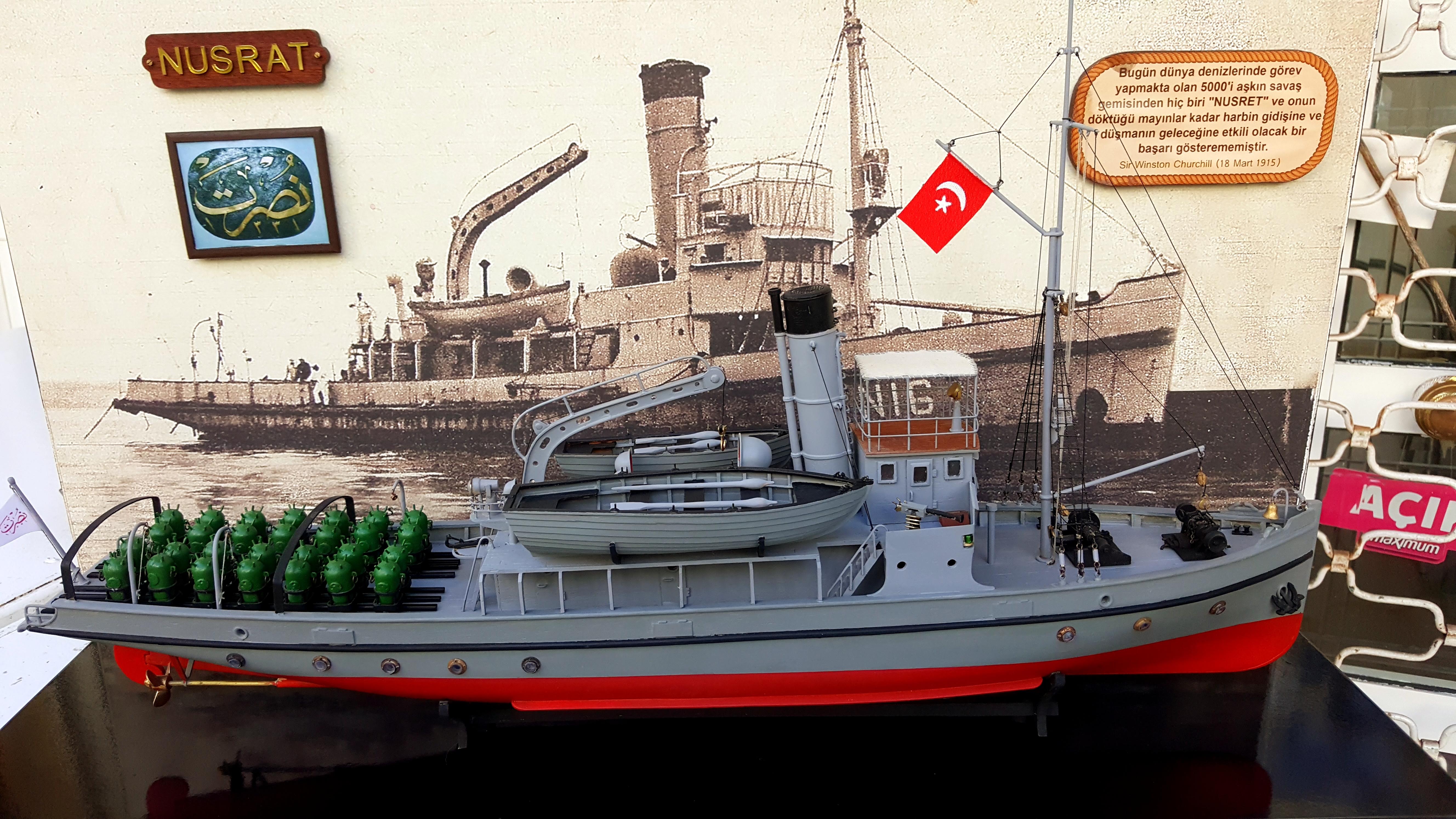 Nusret, Osmanlı Donanması’na ait bir mayın gemisi olup, 1913 yılında Almanya’da inşa edildi. Adını, Osmanlı Donanması’nın denizdeki kaderini değiştiren Çanakkale Savaşı’ndaki başarılarından almıştır. Nusret, donanmanın mayın döşeme kapasitesini artırmak amacıyla özel bir tasarıma sahipti.